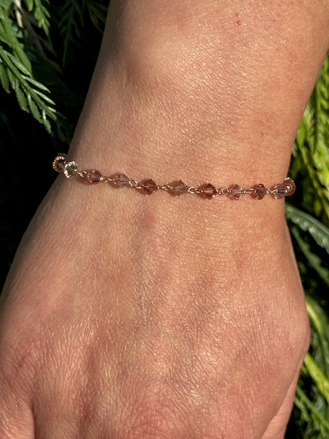 These bracelets are made using: Sterling Silver or Rose Gold Filled wire and clasp, and Austrian Crystal Beads.